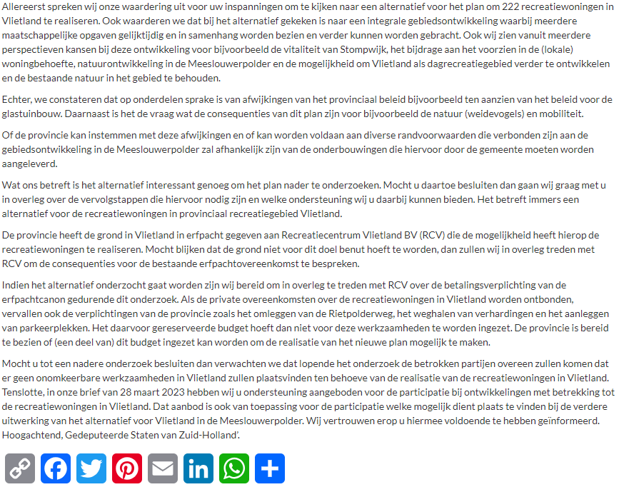 De provinciale reactie lees je in het Vlietnieuws-artikel hieronder: