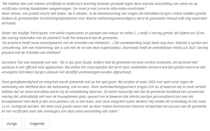 Nieuwsbericht 11 oktober 2022 op Vlietnieuws over Gemeente verspreidt onjuiste informatie