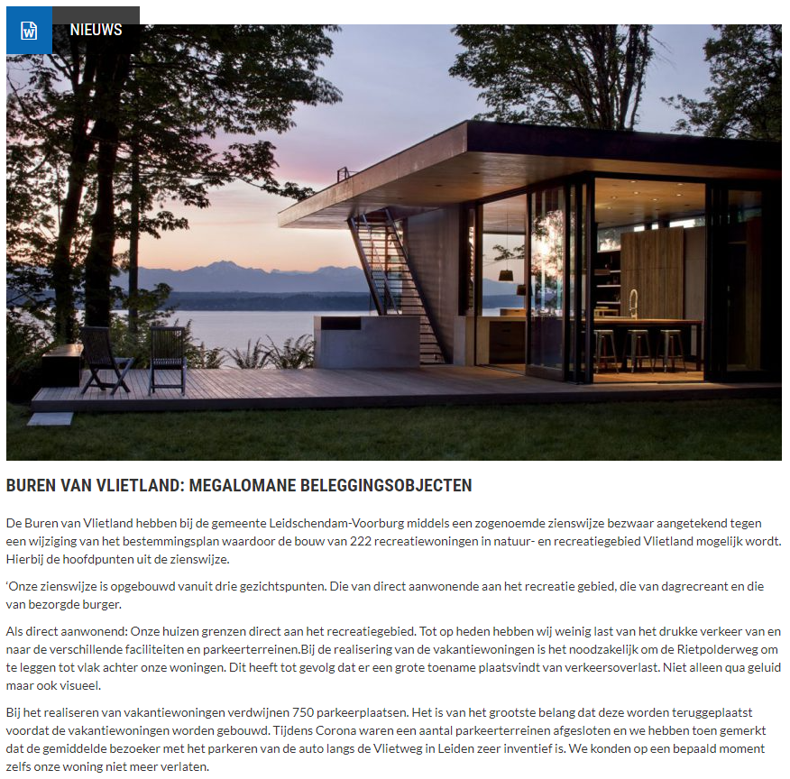 Nieuwsbericht 12 juli 2022 op Vlietnieuws over Buren van Vlietland Megalomane beleggingsobjecten