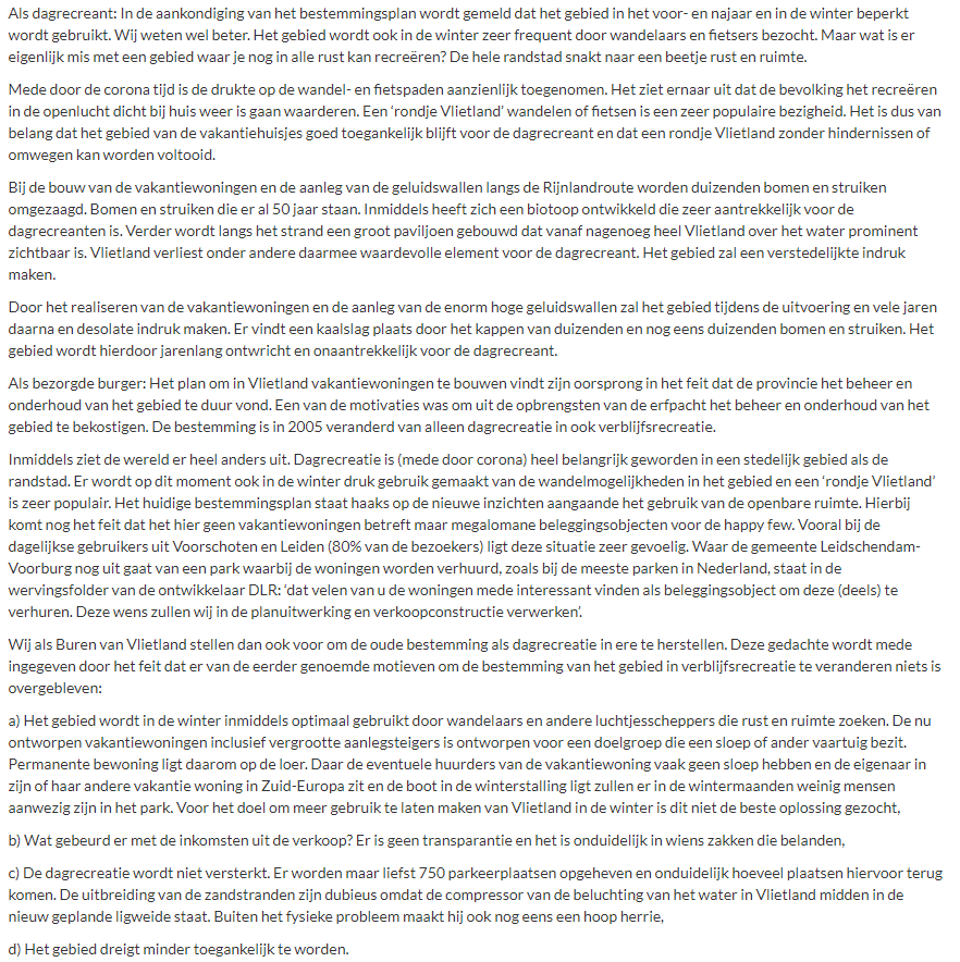 In het artikel van Vlietnieuws lees je de hoofdpunten uit de zienswijze.