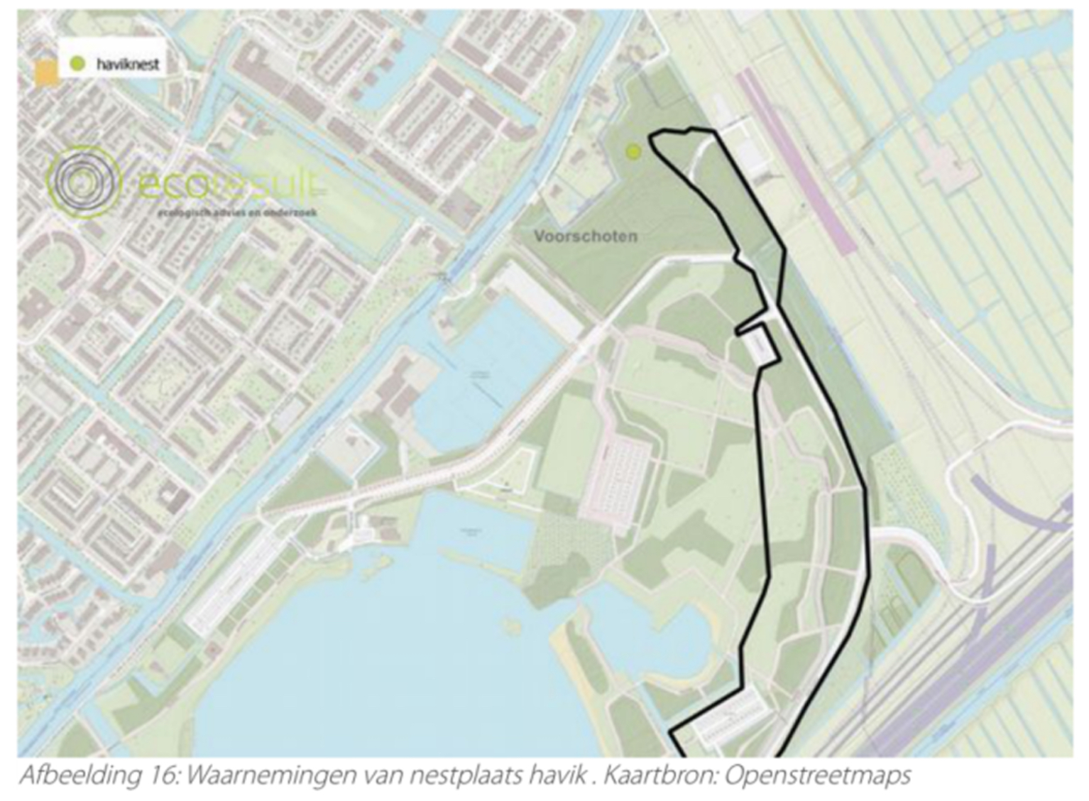 Nader onderzoek vleermuizen, roofvogels, uilen en marters in het kader van de Wet natuurbescherming. Plangebied grondwal Vlietland Leidschendam. Datum 12-10-2021. Door: Ecoresult.