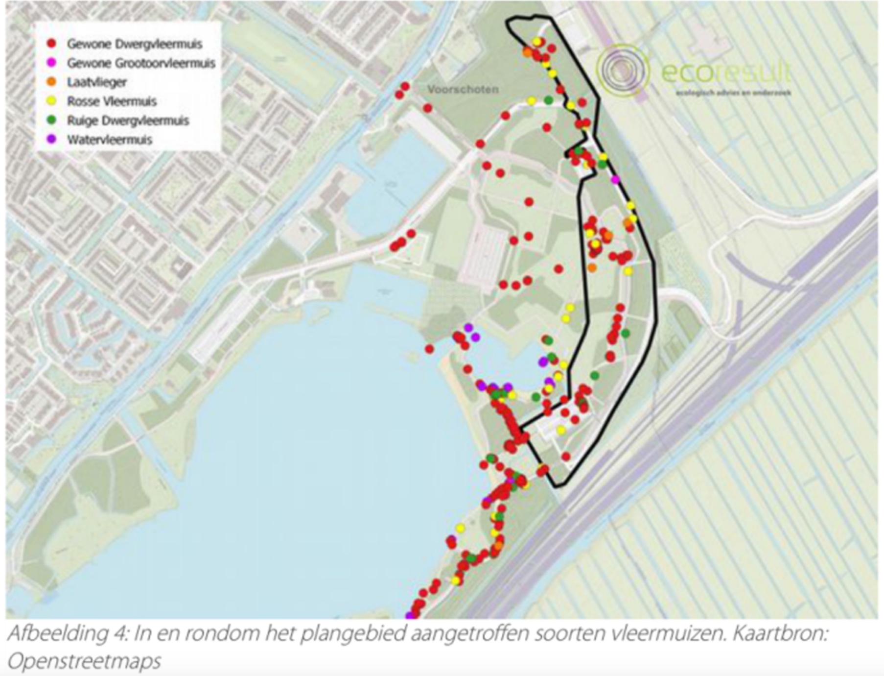Activiteitenplan vleermuizen in het kader van de Wet natuurbescherming. Plangebied herinrichting recreatieterrein Vlietland te Leidschendam-Voorburg. Datum: 04-10-2021. Door: Ecoresult.