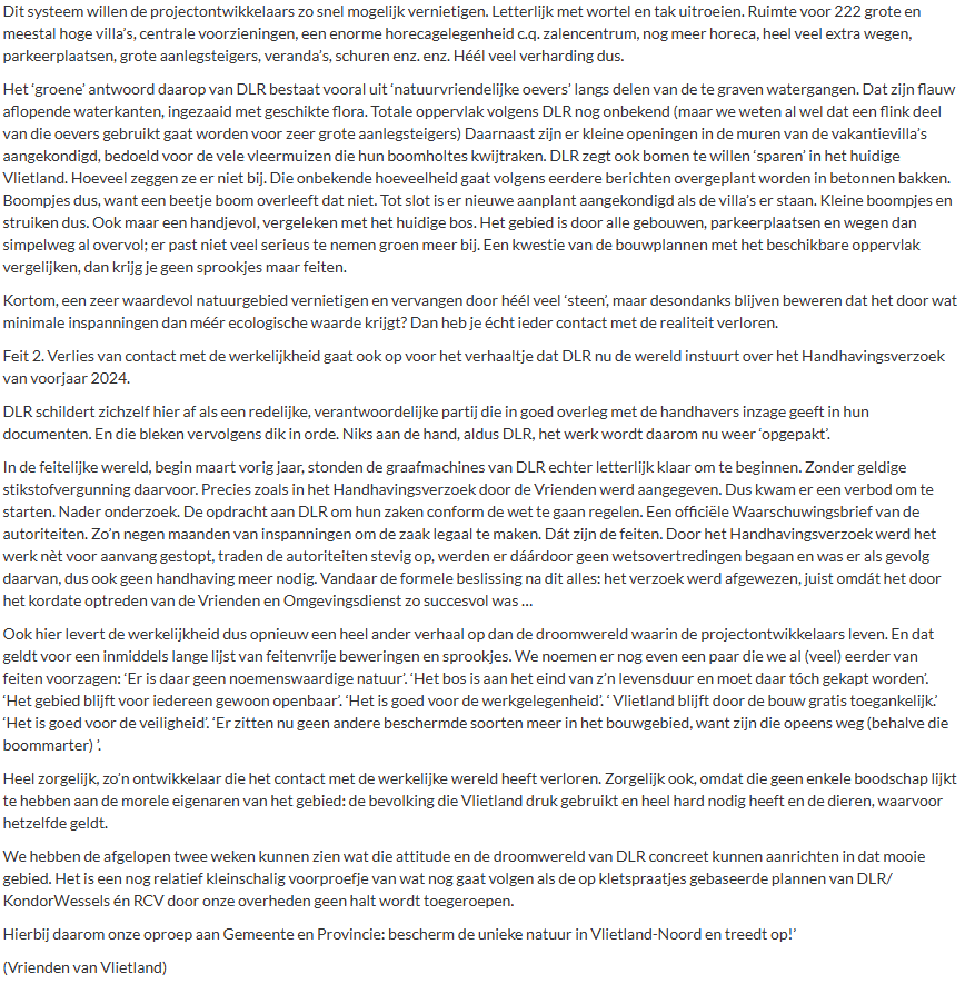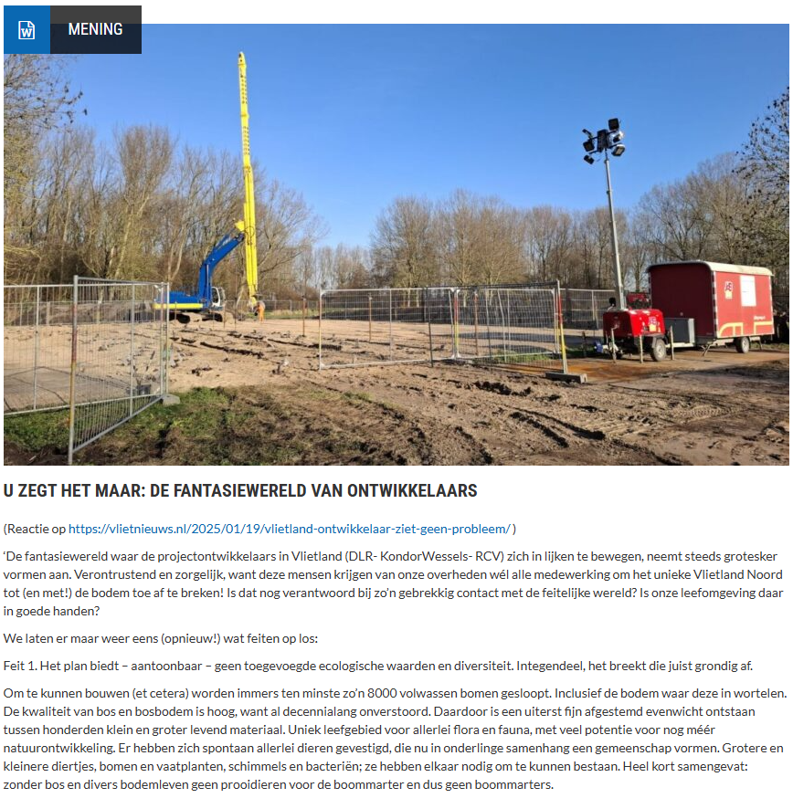 Dat is het begin van de reactie van de Vrienden van Vlietland op het schokkende item dat twee dagen geleden op Vlietnieuws verscheen. Hieronder onze volledige reactie die Vlietnieuws vandaag publiceerde.