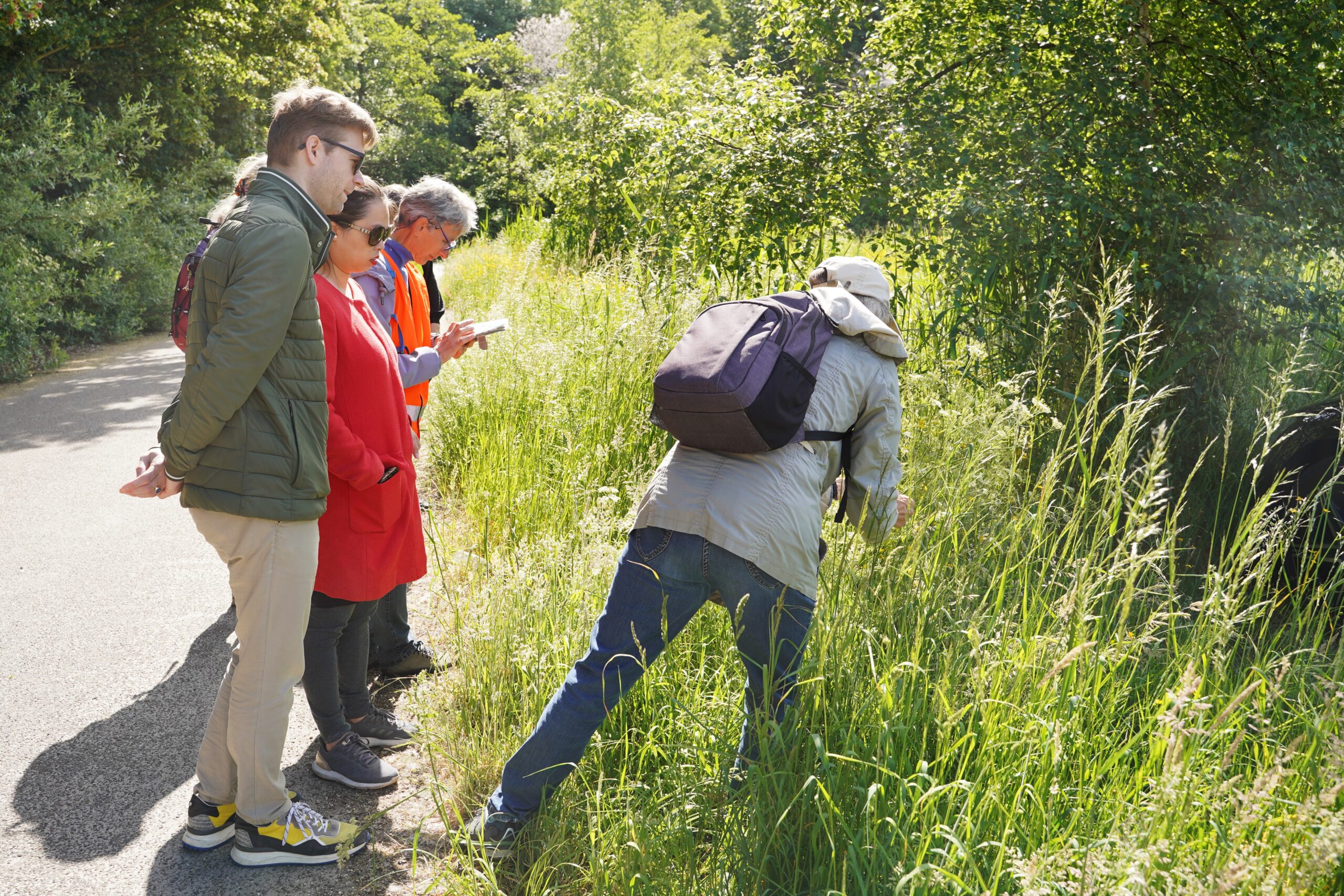 Mensen, groot en klein, op zoek naar aanwezige bomen, planten en dieren in natuurgebied Vlietland-Noord. Gidsen vertellen over het leven in het gebied, er worden zoekkaarten, verrekijkers, vergrootglazen en schepnetten gebruikt. De sfeer is ontspannen, serieus en betrokken. Op zaterdag 17 mei vond de Blioblitz Vlietland plaats in natuurgebied Vlietland-Noord.