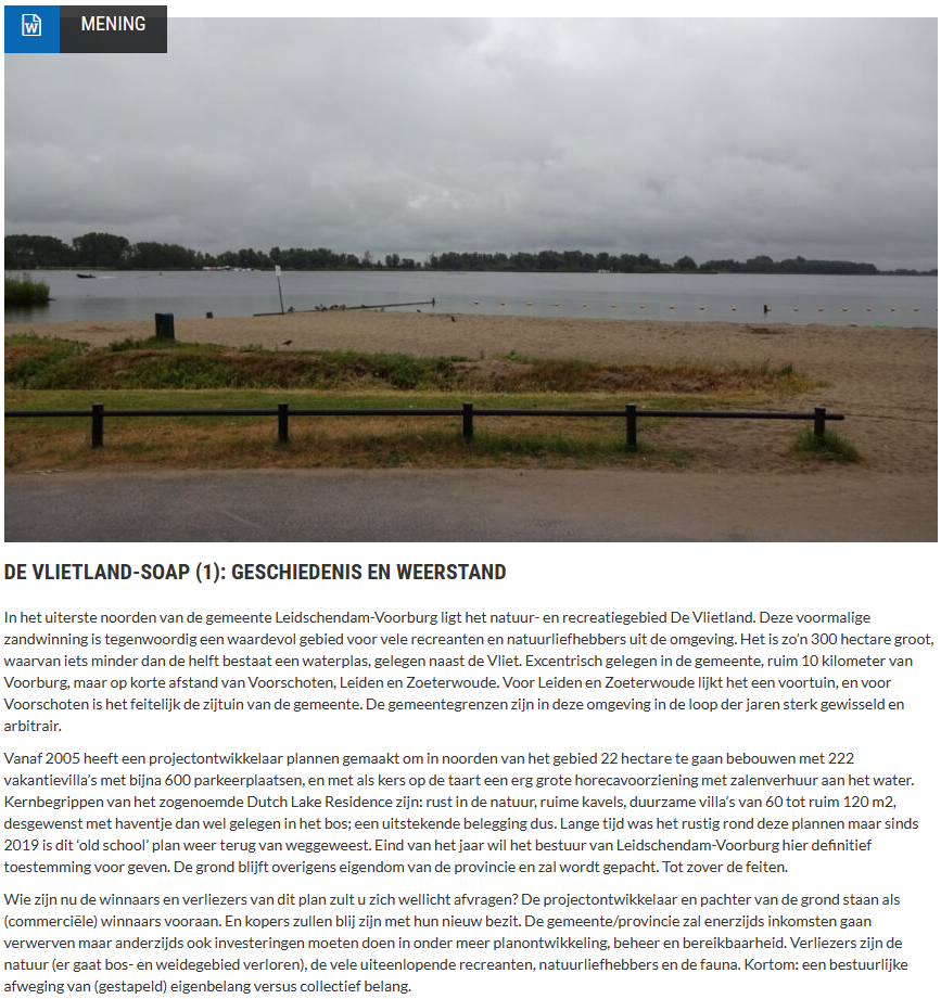 De geschiedenis van natuur- en recreatiegebied Vlietland is lang. Al ver voordat in 2005 de Vrienden van Vlietland is opgericht is met de ontwikkeling van het gebied gestart nadat in de vorige eeuw de plassen door zandwinning zijn ontstaan. Wil je niet alle nieuwsitems (vanaf 2005) op deze site doornemen, Rob van Engelenburg heeft er voor Vlietnieuws onderstaande trilogie over geschreven.