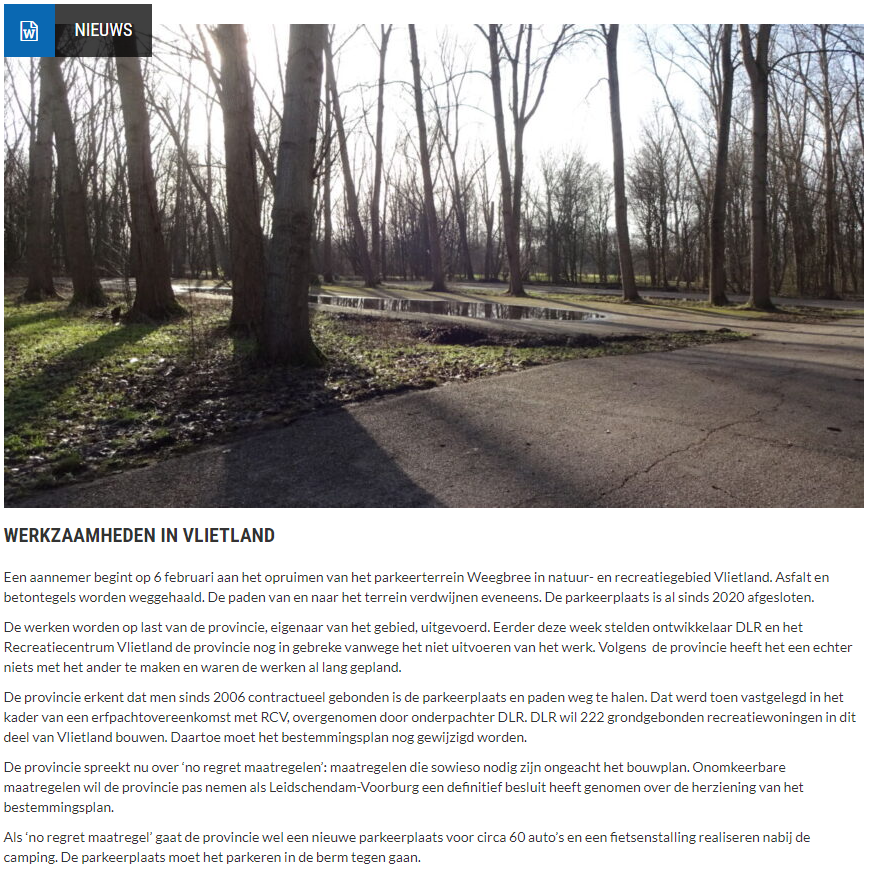 Nieuwsbericht 29 januari 2024 op Vlietnieuws over Werkzaamheden in Vlietland