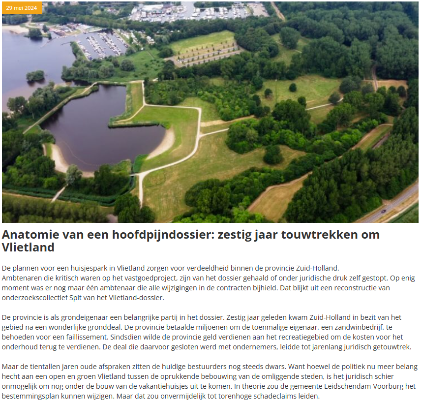 Ambtenaren die kritisch waren op het vastgoedproject, zijn van het dossier gehaald of onder juridische druk zelf gestopt. Op enig moment was er nog maar één ambtenaar die alle wijzigingen in de contracten bijhield. Dat blijkt uit een reconstructie van onderzoekscollectief Spit van het Vlietland-dossier. Het artikel is door Midvliet overgenomen en hieronder te lezen.