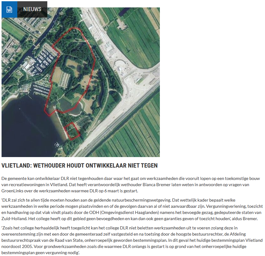 Nieuwsbericht 5 april 2024 op Vlietnieuws over Vlietland: Wethouder houdt ontwikkelaar niet tegen