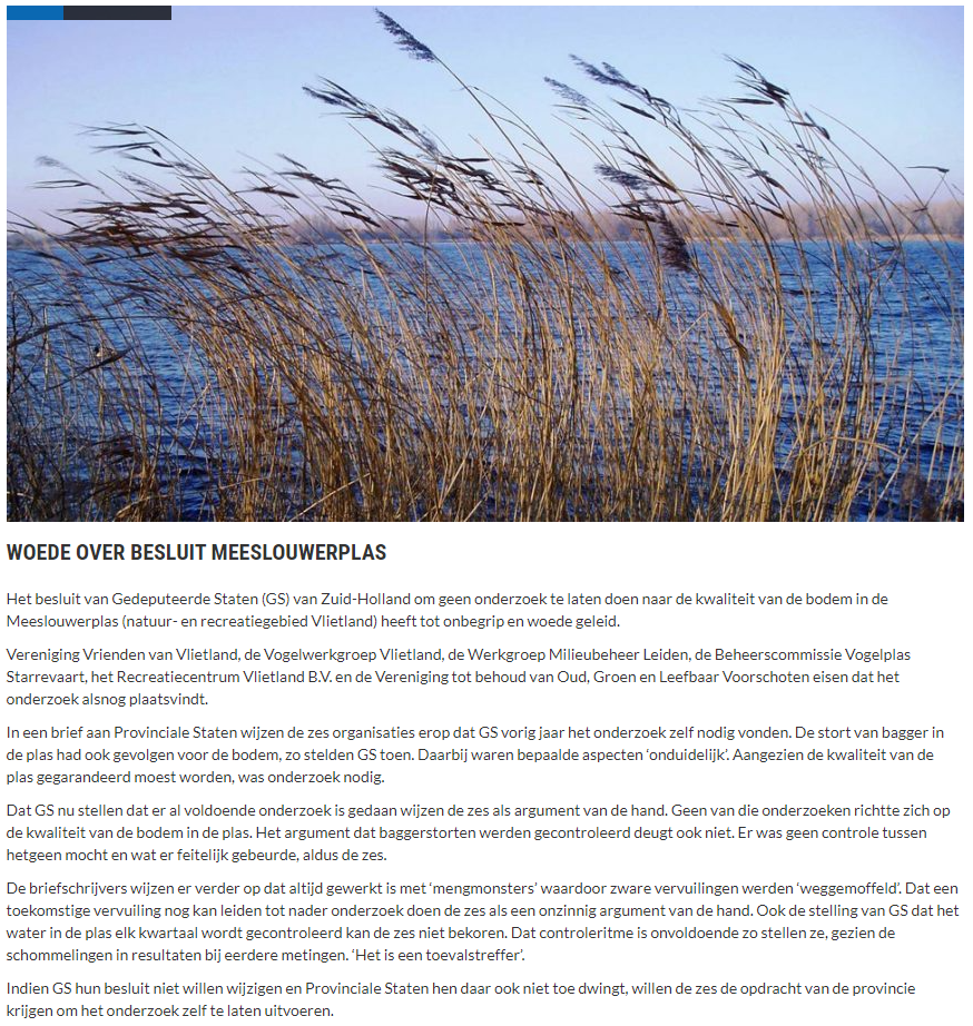 Nieuwsbericht 9 februari 2021 op Vlietnieuws over Woede over besluit Meeslouwerplas